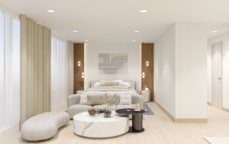 Executive Sanctuary พื้นที่ชั้นบนสุดถูกออกแบบให้เป็น Penthouse Office ประกอบด้วยห้องทำงานผู้จัดการสุดพรีเมียม ที่มีโซนพักผ่อนส่วนตัว ห้องครัว และห้องน้ำในตัว ให้ความรู้สึกเหมือนทำงานอยู่ที่บ้าน (Home Office Experience)