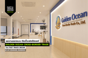 ผลงานออกแบบ 3D รีโนเวทออฟฟิศ Golden Ocean Cross-Border Trade โครงการ RK Biz Center ลาดกระบัง โดย Fast Track Decor พลิกโฉมพื้นที่ใช้งานให้เป็นทั้งสำนักงานและโชว์รูมสินค้าอัจฉริยะ ดีไซน์ทันสมัย ตอบโจทย์ธุรกิจ Cross-Border ยุคใหม่